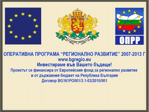 се осъществява с финансовата подкрепа на Оперативна програма “Регионално развитие 2007 – 2013 г.”, съфинансирана от Европейския съюз чрез Европейския фонд за регионално развитие и от държавния бюджет на Република България.
